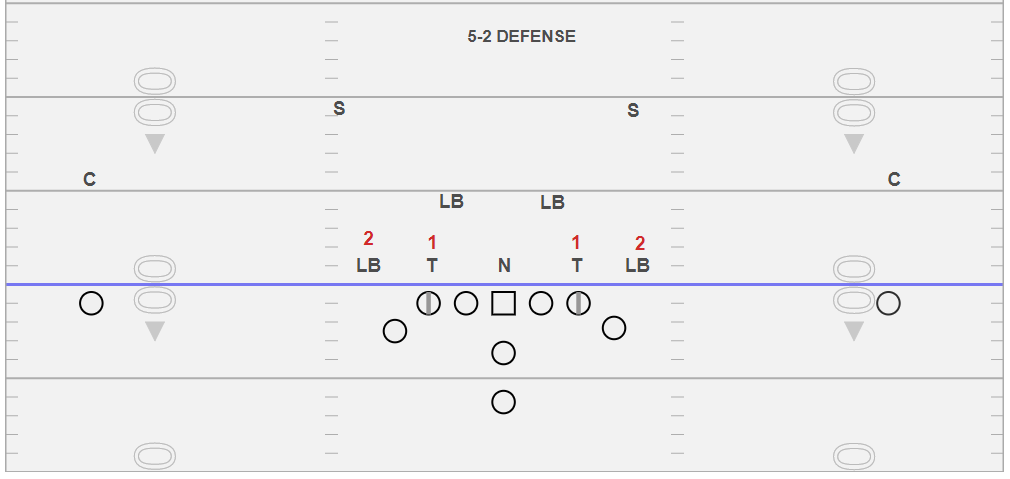 In this blog we will continue with defensive identification and a focus on Odd fronts and what we call Junk fronts. We will begin discussion a 5-2 defensive front.