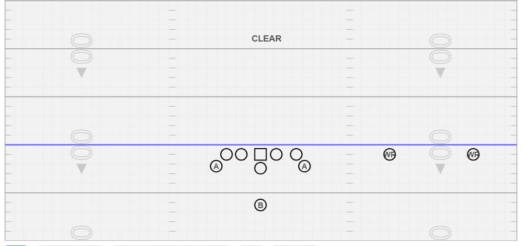 We use this exclusively vs. 8 man fronts and to help us create a numbers advantage depending on if the defensive takes the corner over or bumps. If we wanted the formation flipped, we would just signal Clear Flip.